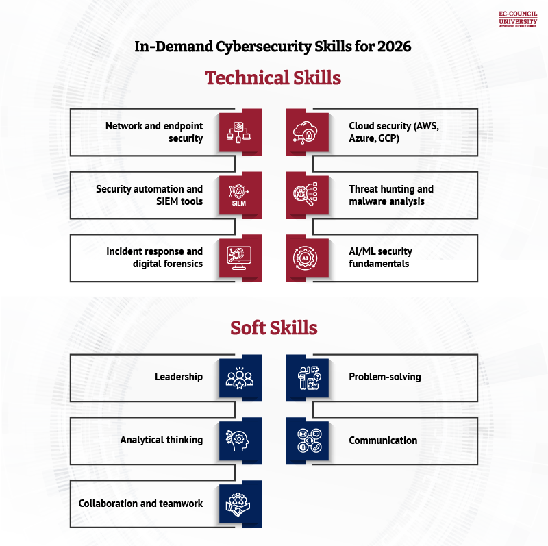 So, for professionals to thrive in cybersecurity in 2026, they should consider building a mix of technical and soft skills, earn the right credentials, and maintain a strong portfolio.