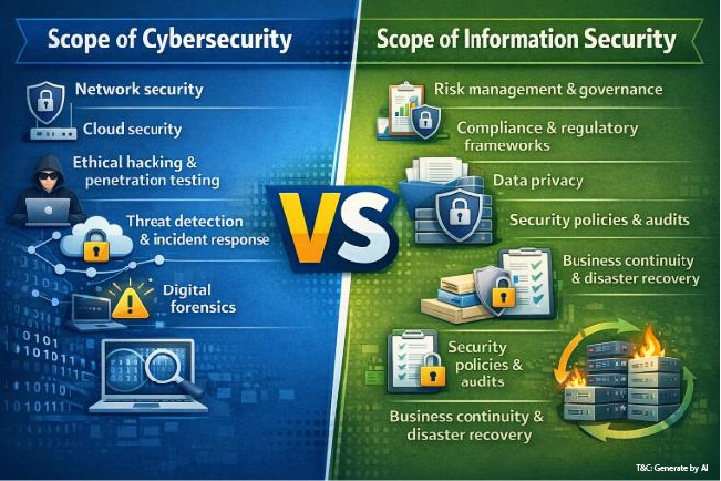 - Information Security focuses on protecting information in all forms—digital and physical.