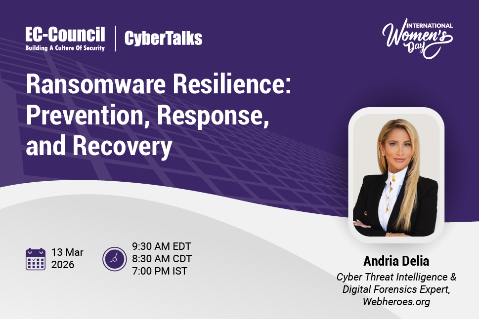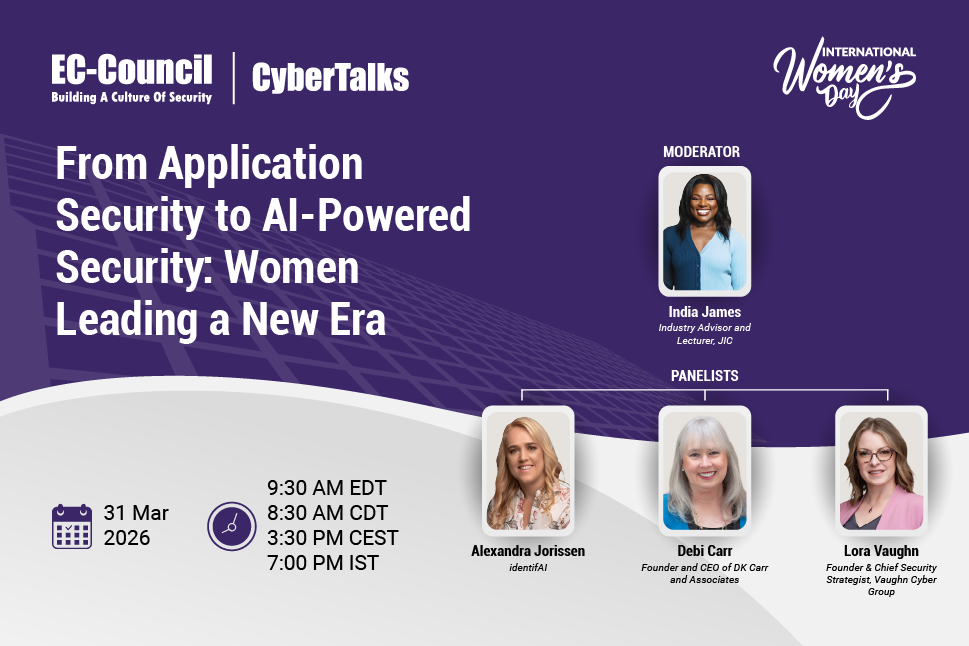 If you’re looking to further your understanding of cyber security, join EC-Council University’s flagship webinar series – Cyber Talks. It’s 100% free and features exclusive insights from prominent cyber security experts.