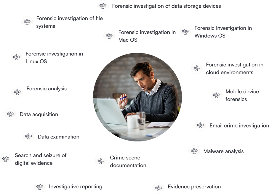 Get hands-on practice with state-of-the-art cybersecurity tools in simulations that mirror real-world scenarios with this CHFI certification course. The virtual lab exercises included in this computer forensics certification course cover computer forensics disciplines like computer forensics investigation processes, hard disks and file systems, data acquisition and duplication, Windows forensics, network forensics, mobile forensics, email crime investigation, and much more.
